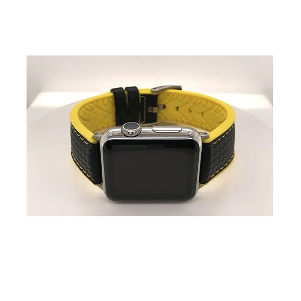 Δερμάτινα λουριά ρολογιών από ιταλικό δέρμα μοσχαριού και σιλικόνη. Ιμάντες ρολογιών από απομίμηση ανθρακονημάτων. Αντιαλλεργικές πόρπες από ανοξείδωτο χάλυβα. Επίπεδο μοντέλο με ραφές. Αυτοί οι ιμάντες ρολογιών προτείνονται για αθλητικά ρολόγια.