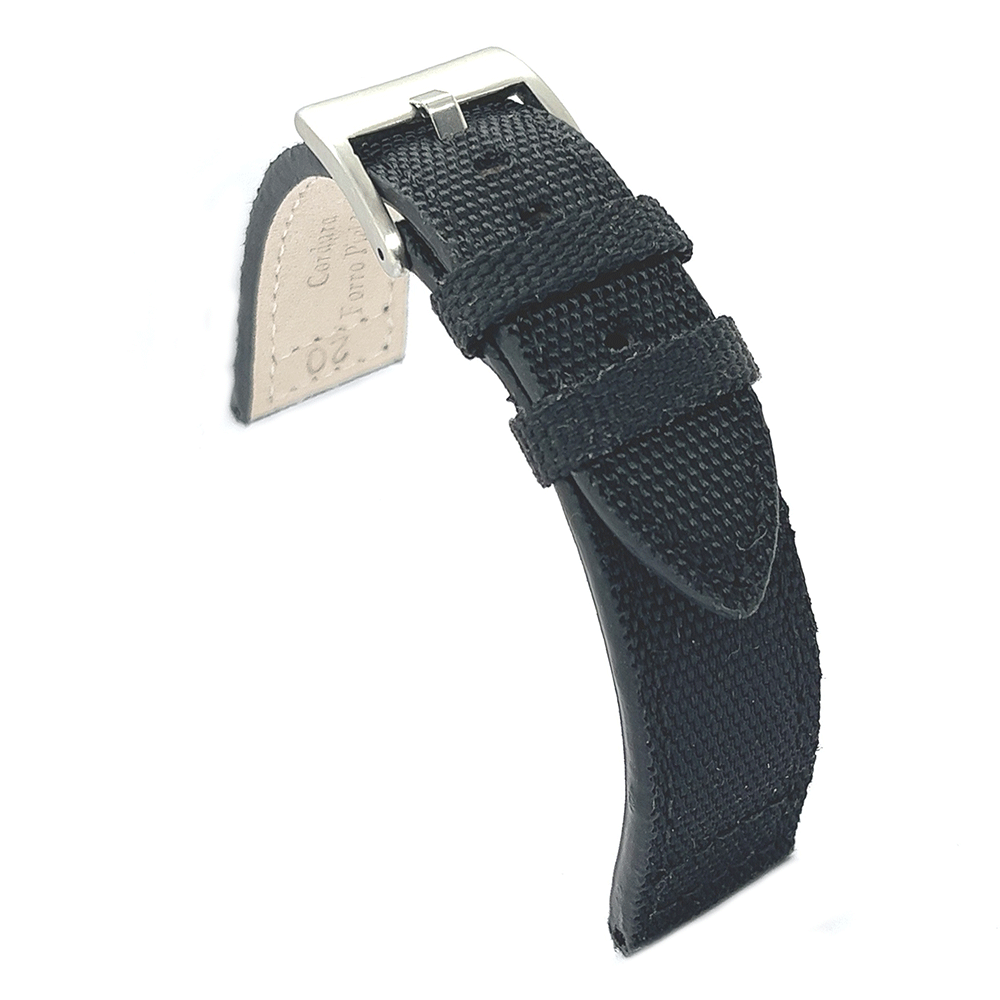 Δερμάτινα λουριά ρολογιών από ιταλικό δέρμα μοσχαριού και ύφασμα κεβλάρ. Αντιαλλεργικές πόρπες από ανοξείδωτο χάλυβα. Επίπεδο μοντέλο με ραφές. Αυτοί οι ιμάντες ρολογιών προτείνονται για αθλητικά ρολόγια.