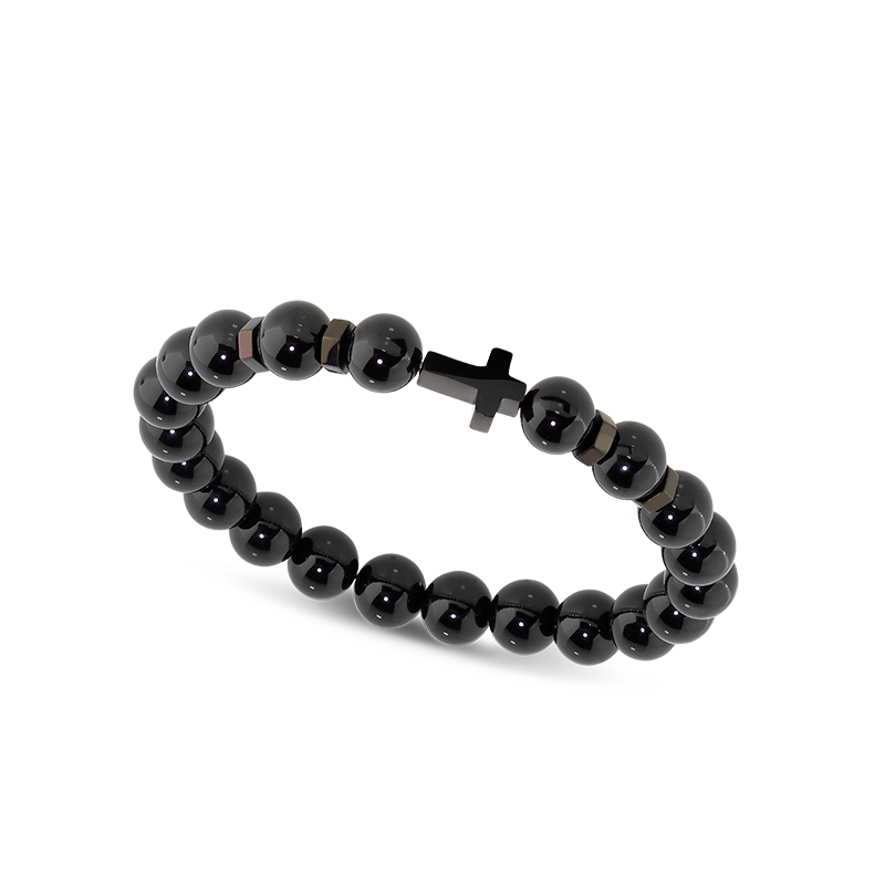 Βυθιστείτε σε έναν κόσμο γαλήνης και δύναμης με τη συλλογή μας MYSTÈRES. Αυτό το βραχιόλι με χάντρες από μαύρο αχάτη, διακοσμημένο με έναν σταυρό από μαύρο PVD, συμβολίζει την προστασία και τη σταθερότητα, ενώ παράλληλα αναδεικνύει ένα λιτό, δυναμικό και διαχρονικό στυλ.