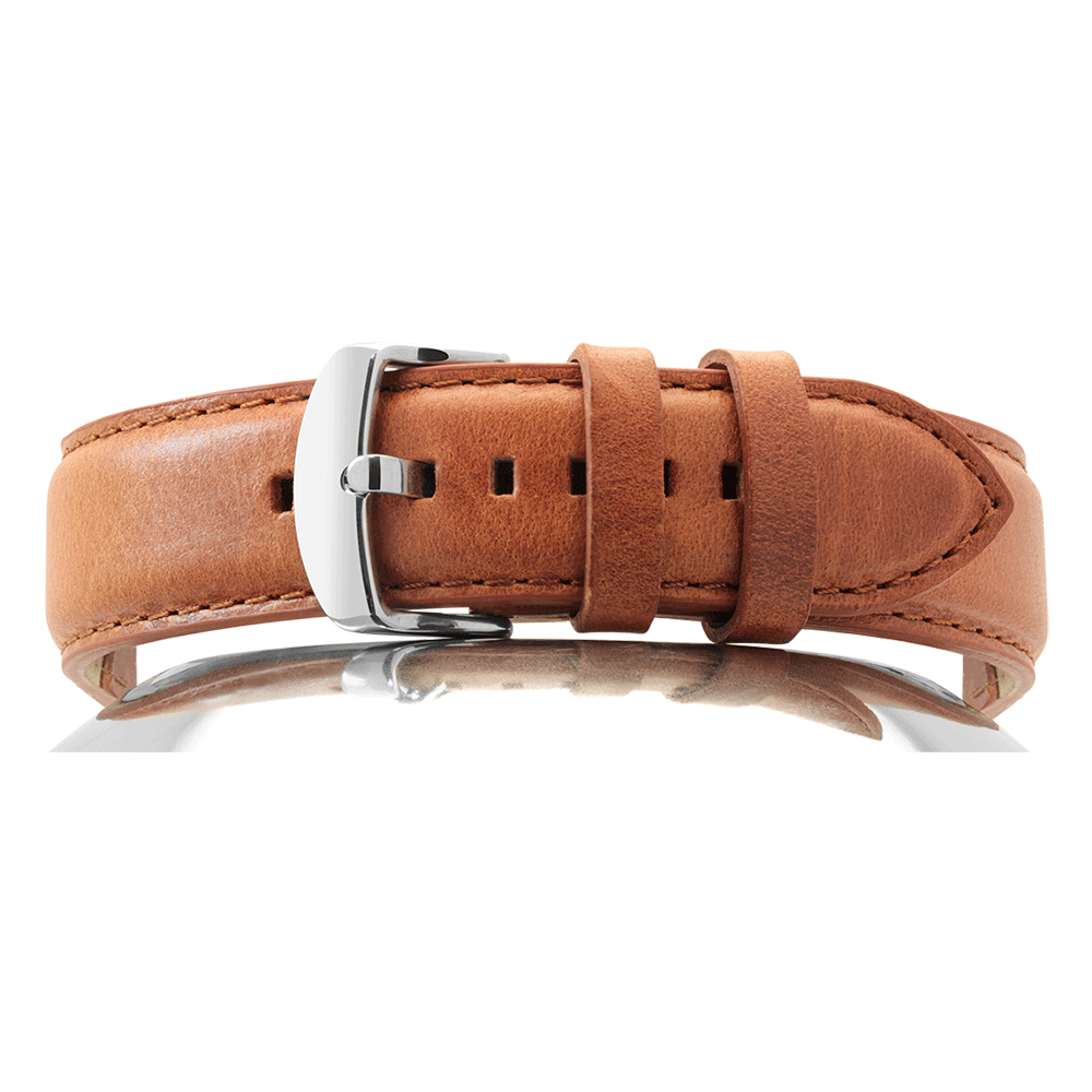Δέρμα αγελάδας σε κόκκους, επένδυση nubuck. Ίδιο χρώμα ραφή. Σπορ ατσάλινη πόρπη.