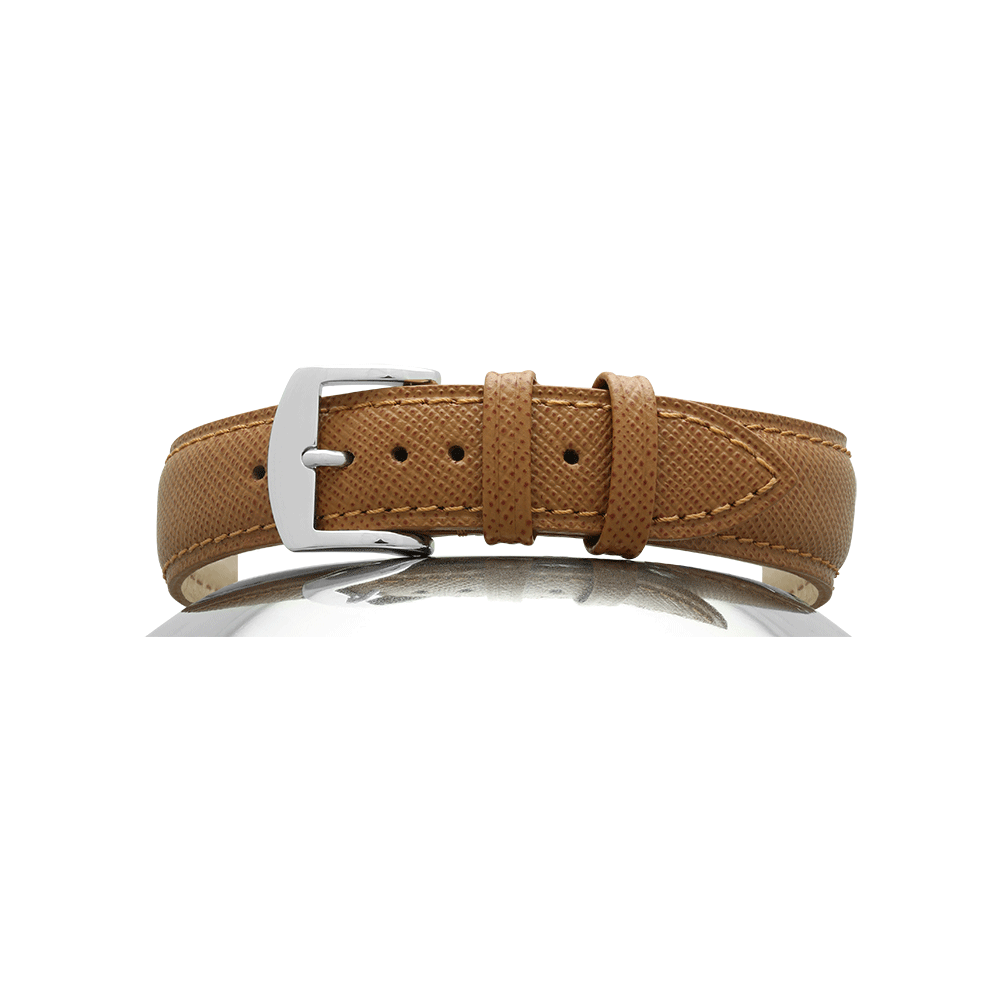Δέρμα αγελάδας Saffiano, επένδυση nubuck. Ίδιο χρώμα ραφή. Πόρπη αλουμινίου.