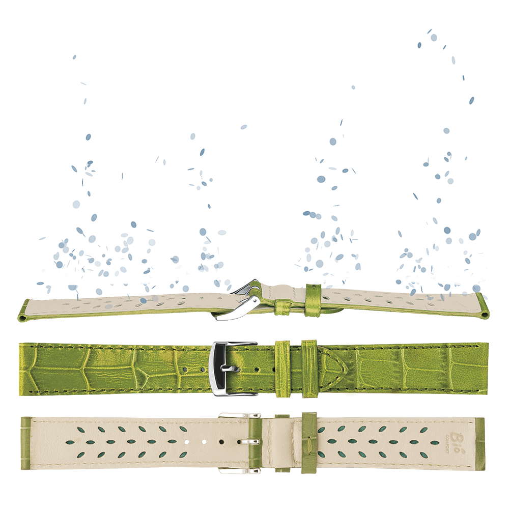 Γλασαρισμένος κρέας αλιγάτορα, Επένδυση από δέρμα αγελάδας Aeroconfort. Ίδιο χρώμα ραφή. Πόρπη αλουμινίου.